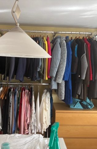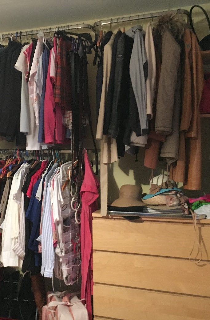 Vorher: Überfüllte Stangen, gestapelte Kleidung und die tägliche Frage: Was ziehe ich an? Entscheidungen kosten Energie, noch bevor der Tag richtig beginnt.